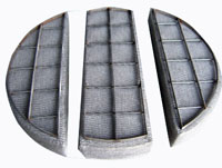用途:除沫器(除雾器)用于分离塔中气体夹带的液滴,以保证有传质效率,降低有价值的物料损失和改善塔后压缩机的操作,一般多在塔顶设置丝网除沫器。可有效去除3--5um的雾滴,塔盘间若设置除沫器,不仅可保证塔盘的传质效率,还可以减小板间距。所以丝网除沫器主要用于气液分离。亦可为空气过滤器用于气体分离。此外,丝网还可作为仪表工业中各类仪表的缓冲器,以防止电波干扰的电子屏蔽器等。