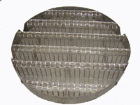 用途:除沫器(除雾器)用于分离塔中气体夹带的液滴,以保证有传质效率,降低有价值的物料损失和改善塔后压缩机的操作,一般多在塔顶设置丝网除沫器。可有效去除3--5um的雾滴,塔盘间若设置除沫器,不仅可保证塔盘的传质效率,还可以减小板间距。所以丝网除沫器主要用于气液分离。亦可为空气过滤器用于气体分离。此外,丝网还可作为仪表工业中各类仪表的缓冲器,以防止电波干扰的电子屏蔽器等。